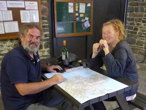 Weiter auf der Küstenstraße finden wir für zwei Nächte einen tollen Farmcamping in Fowey. Es ist ein kleines Städtchen mit einem Seehafen. Wohl, weil am nächsten Tag eine große Regatta stattfindet, tummeln sich unzählige kleinere Segelboote auf dem River. Hier finden wir auch ein interessantes Meeresaquarium, entdecken sonnige, lauschige Gastgärten zum Verweilen und erzählen einigen Neugierigen von unserer Reise, an deren Anfang wir ja erst stehen. Wir haben aber viel vor, und so sitzen wir am Abend vor dem Zelt, genießen den wunderschönen Blick auf den River und planen die weitere Reise.