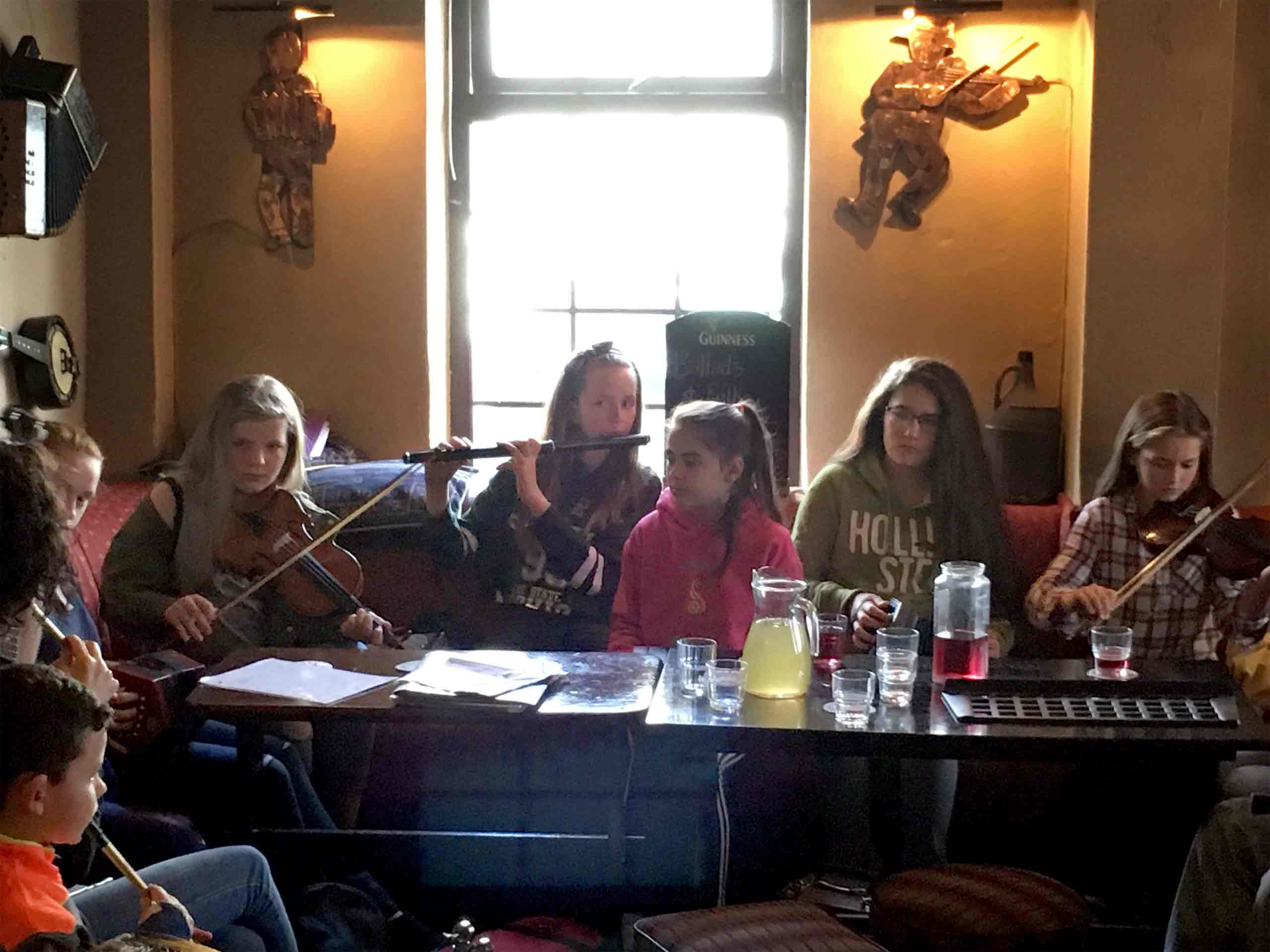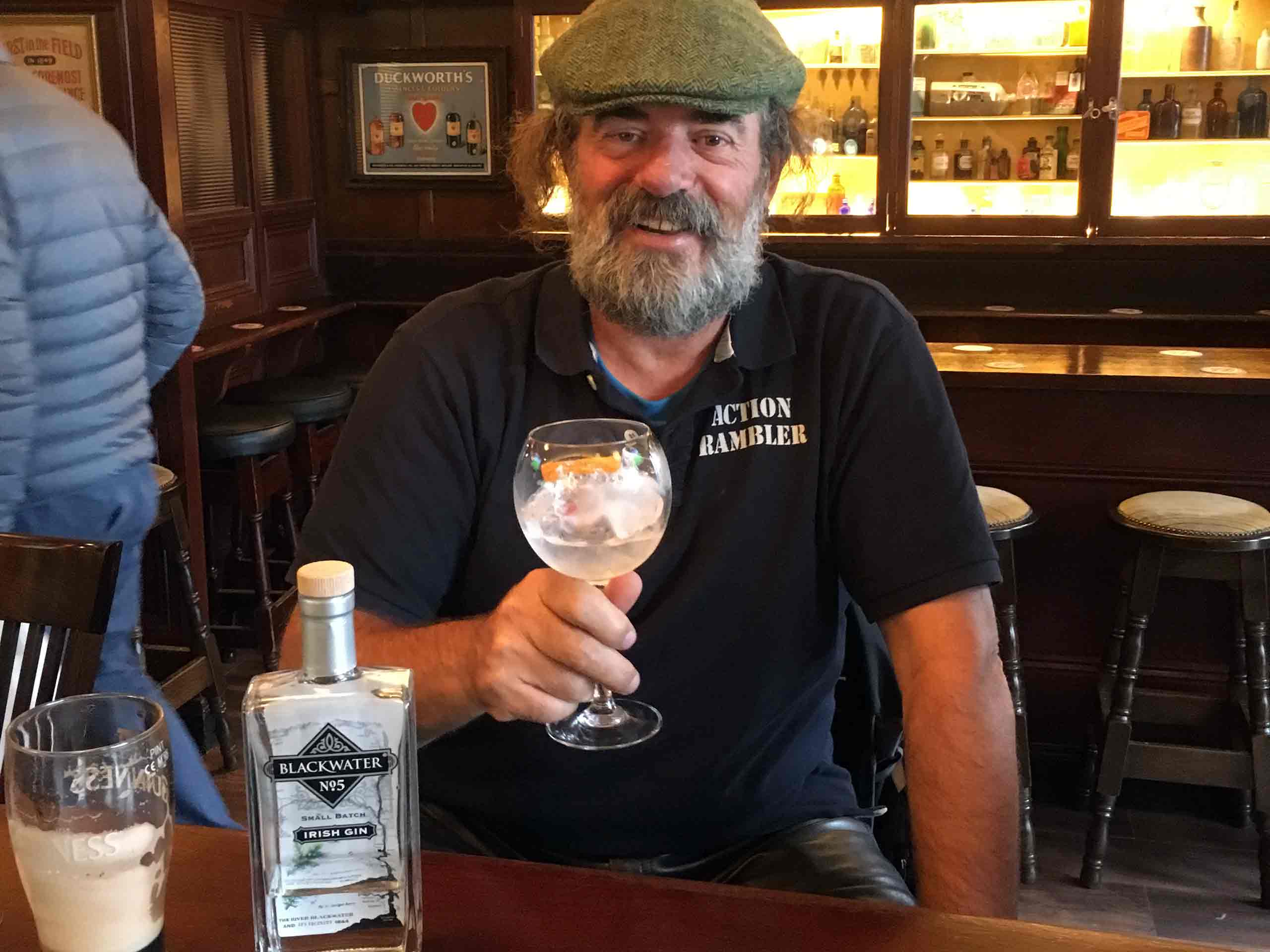 Beim Rückweg kehren wir in Corrofin im Rambler‘s Rest zu. Hier wird auch eine irische Spezialität serviert, ein Eintopf, bekannt als Irish Stew. Ulli ist nicht grad begeistert, weil das Lamm wohl ein älteres Schaf war. Nach dem Essen gönnen wir uns noch einen Blackwater Nr.5, einen irischen Gin, und der versöhnt sie wieder mit Irland. Wir verplappern uns ein bisschen und kommen drauf, dass es bald noch live irische Stubenmusik gibt. Immer mehr Musiker kommen ins Lokal. Irgendwann beginnt einer zu klimpern, andere stimmen ein und auch Nachfolgende setzen sich zu diesem Tisch und spielen mit. So sind es bald etwa 10 Musiker, die da irische Musik spielen. Das alles ergibt dann einen sehr geselligen Abend.