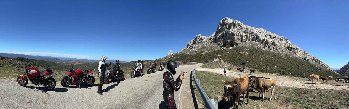 Harry Fink, der seit 20 Jahren zweimal jährlich diesen Sehnsuchtsort für Biker ansteuert, jede Sardine und jede Kurve persönlich kennt, hat ein sensationelles Programm für die Bodenseevögel zusammen gestellt: die berühmte SS125 hinunter nach Arbatax, tausende Kurven im Hinterland rund um Bitti, kulinarische Sensationen von der Fischplatte bis zur Span(n)ferkel-Partie – Maialetto Sardo – ein zutiefst traditionelles, sardisches Corte (Fest) „Autunno in Barbagia” in Lula und eine Minikreuzfahrt mit dem Holzsegler entlang des Golf von Orosei mit seinen Traumstränden und Höhlen. Die Temperaturen anfangs Oktober sind ideal zum Motorrad fahren (18° C – 27° C), die Wassertemperaturen liegen anfangs bei traumhaften 23° C, bevor zwei Regentage mit stürmischem Mistral die Badetemperaturen in Richtung 20° C drücken.